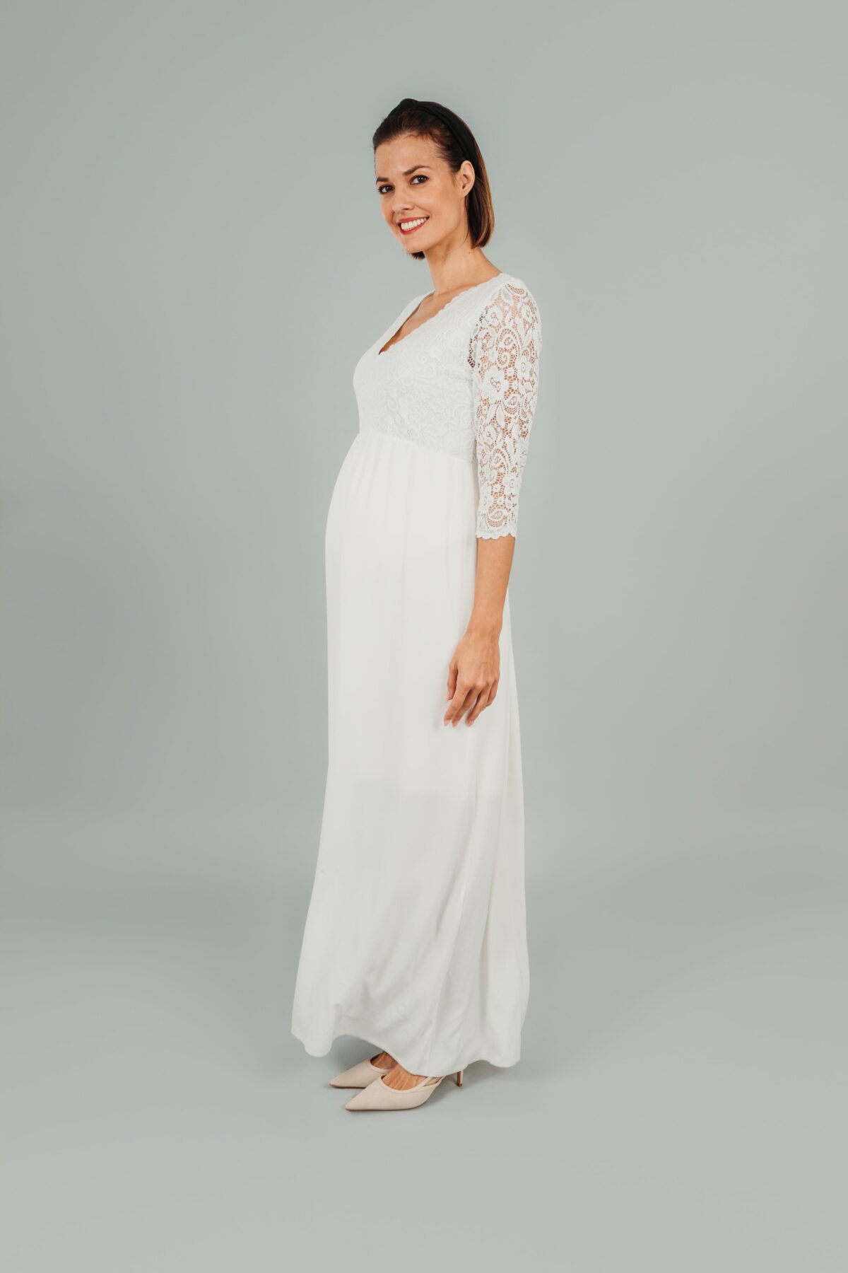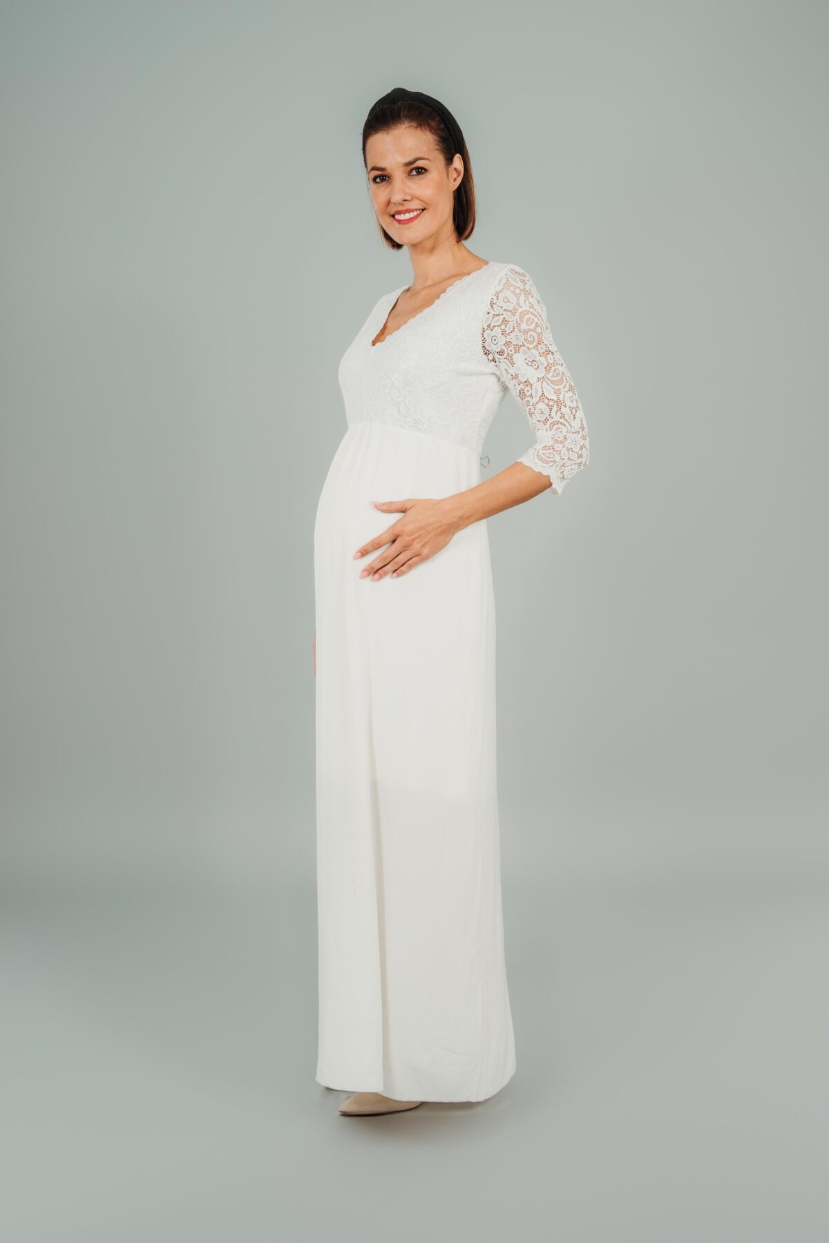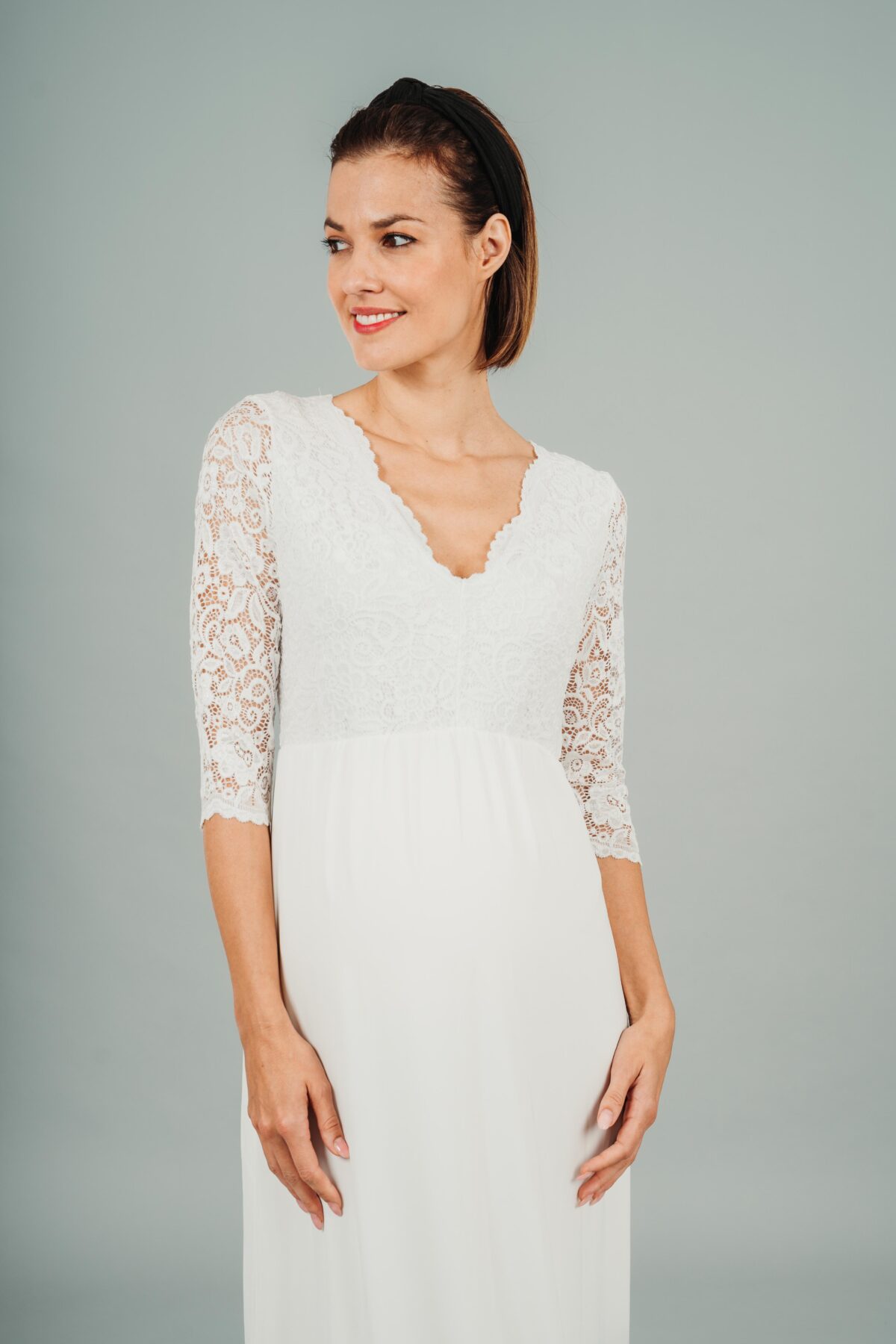 Gyönyörű Karolina esküvői ruhánk ,nélkülözhetetlen darabja a nagy napnak .Felül csipke ,könyékig érő ujjal,mell alatt meghúzva,szoknyája dupla kényelmes anyagból.