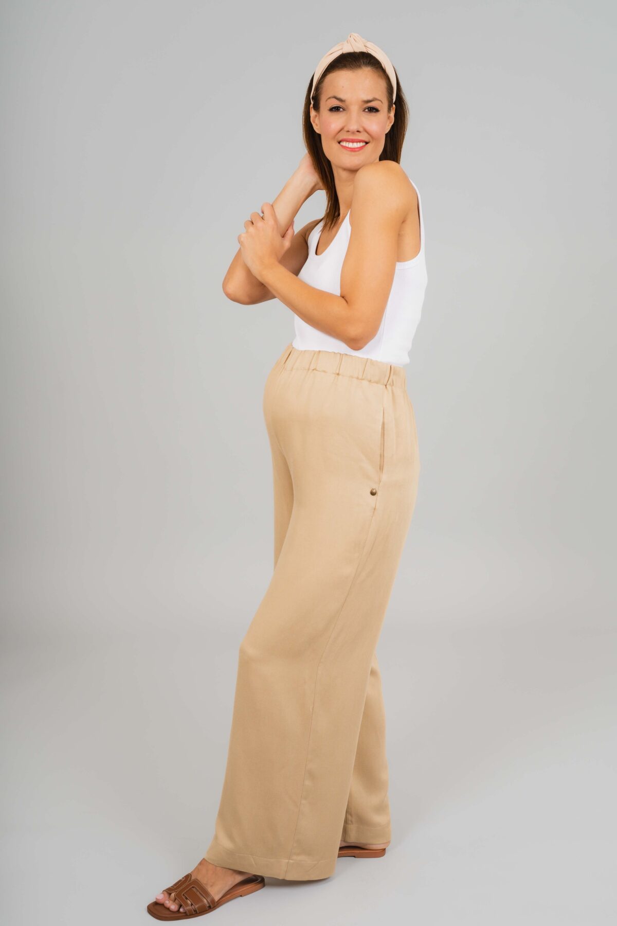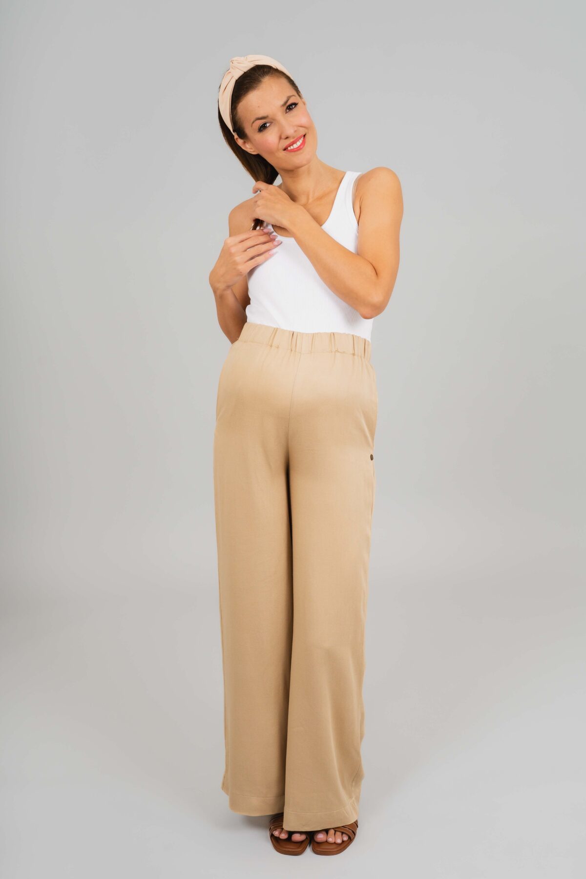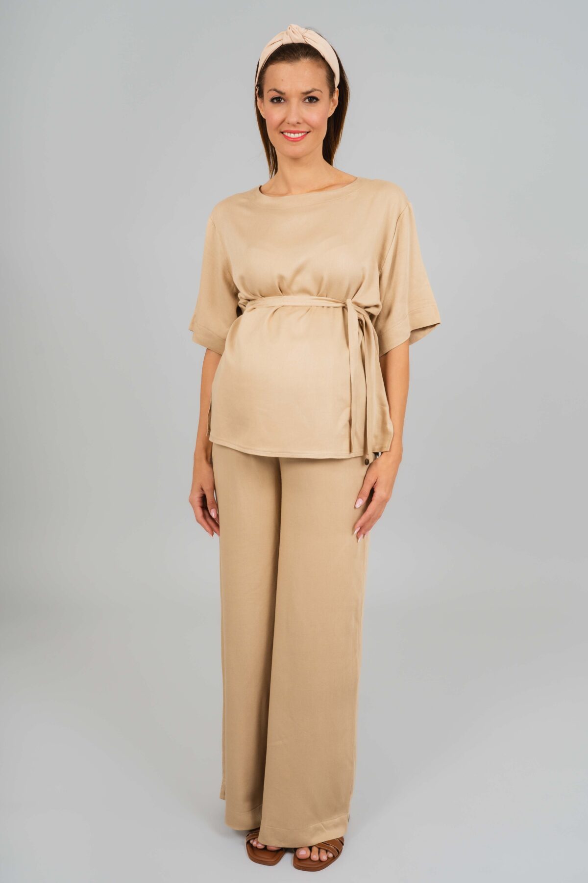Hellobaby kismama nadrágunk a kényelem és a letisztult stílus tökéletes kombinációja. Len hatású, könnyed anyaga kellemes viseletet biztosít, jól szellőzik, így ideális választás a mindennapokra. Rugalmas derékrésze finoman alkalmazkodik a növekvő pocakhoz, miközben szabad mozgást és egész napos komfortot nyújt. A hozzá illő Messi felsőnkkel szettben viselve harmonikus, modern outfitet alkot.