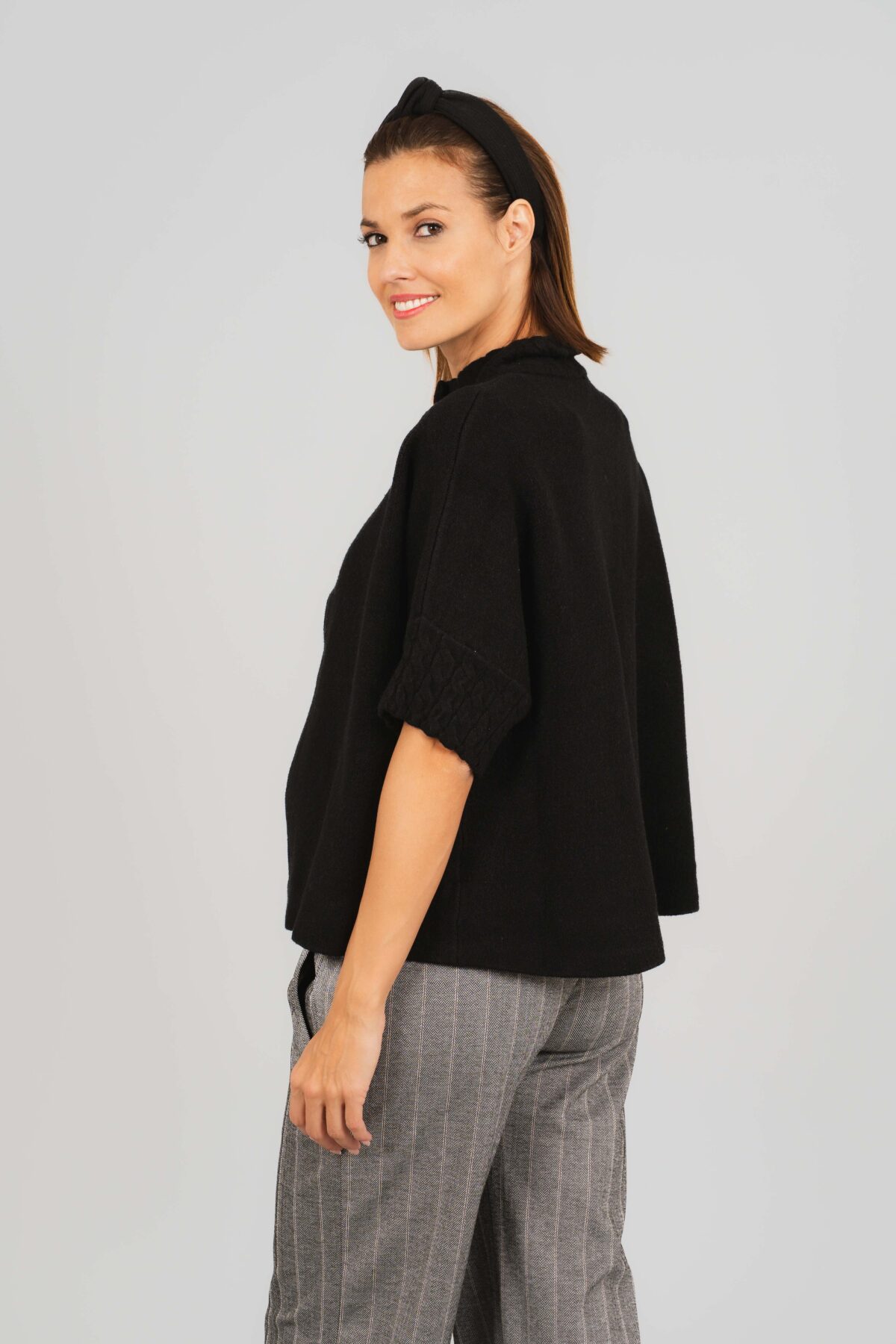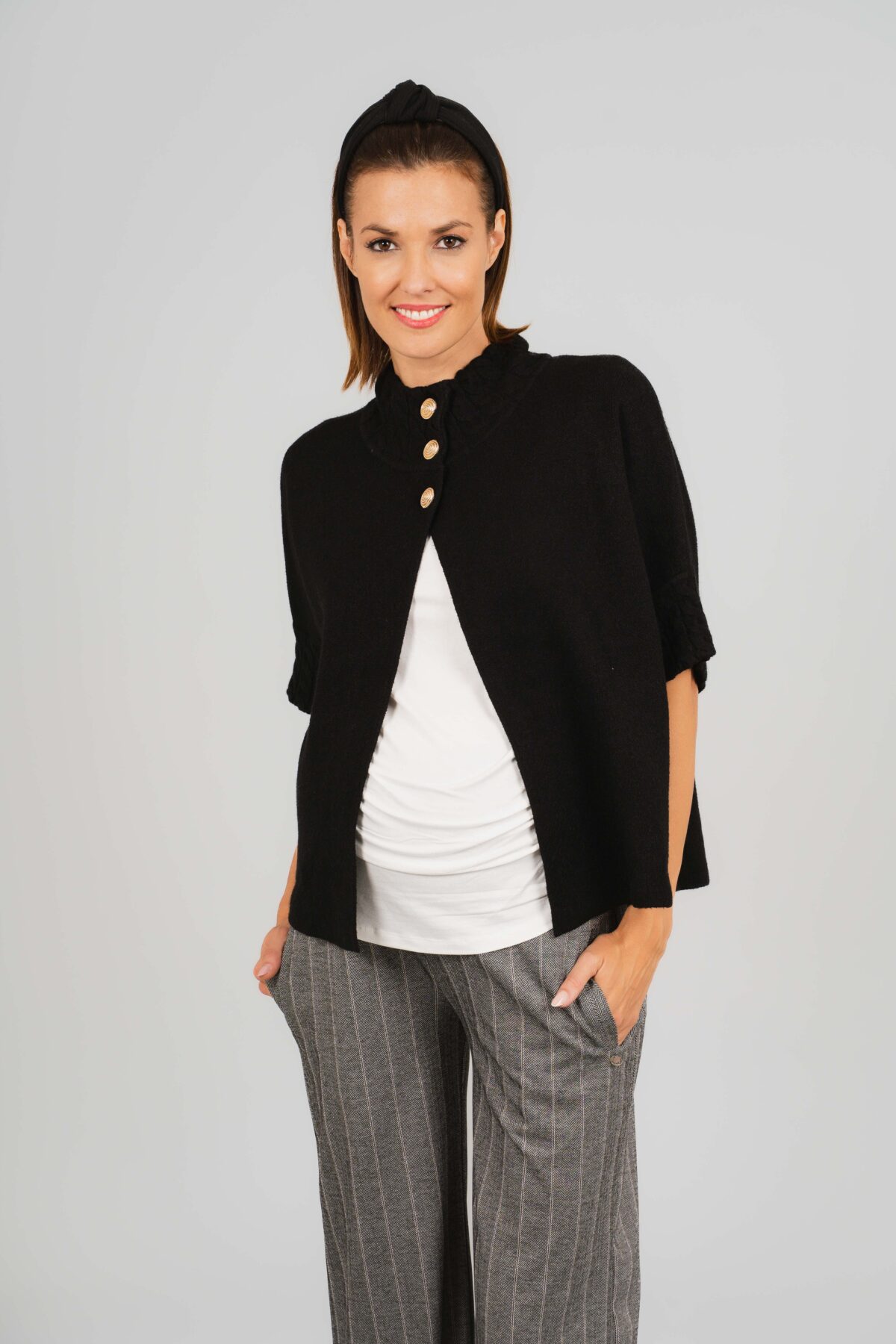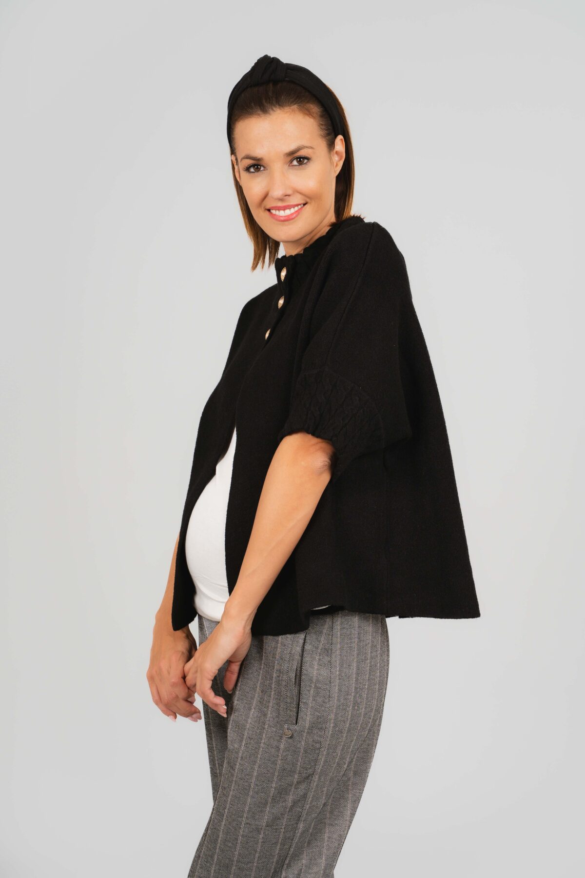 Hello Baby Kismama poncsónk, meleg, kényelmes és stílusos az őszi, téli napokra. Puha tapintású rövid fazonú kismama kardigán, amely tökéletes választás hűvösebb napokra. A várandóság minden szakaszában és utána is kellemes viselet.