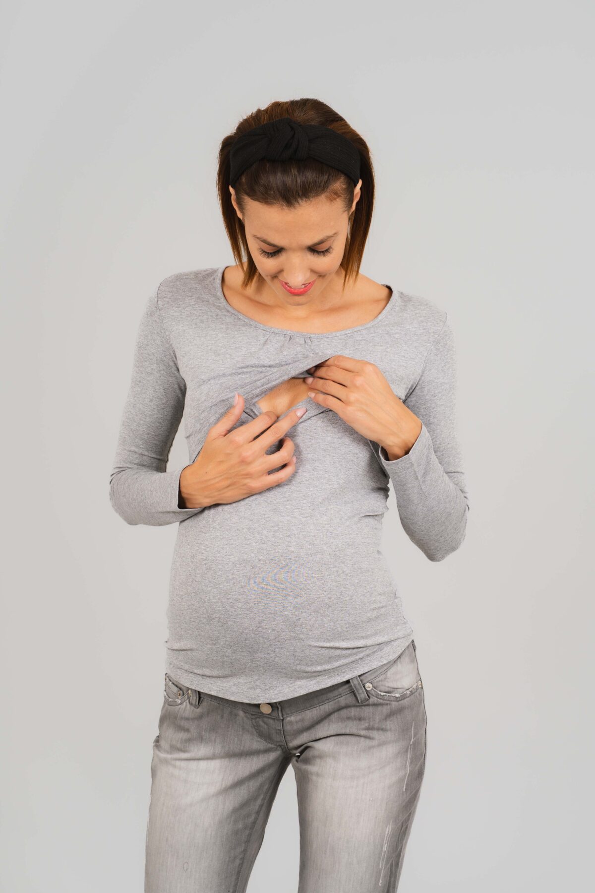 Legkedveltebb HELLOBABY kismama szoptatós fazonunk, testhezálló, kerek nyakkal, hosszú ujjal. Kényelmes, diszkrét szoptatást biztosít bárhol, bármikor.