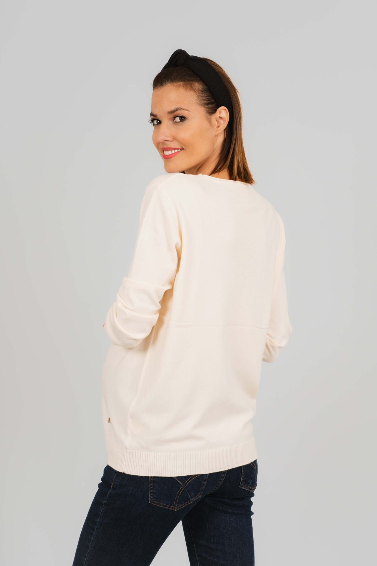 Hello Baby Kismama kerek -nyakú, laza szabású pulóverünk meleg és divatos viselet. Puha, meleg anyagból készült, amely kényelmes viseletet biztosít a hűvösebb napokon. Rugalmas kialakítása miatt tökéletesen illeszkedik a növekvő pocakhoz.