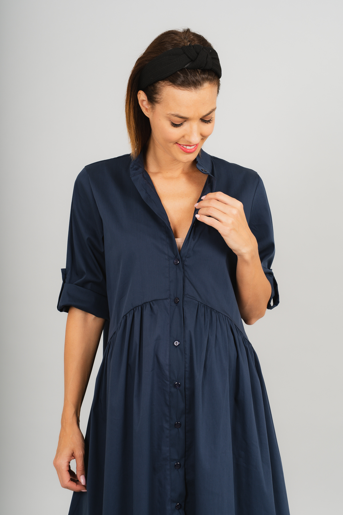 Nyári kedvenc ruhánk HELLOBABY kismama ingruha, elöl gombos, lefelé bővülő szellős fazon, ujja felhajtható. Pocakkal és utána is viselhető.
